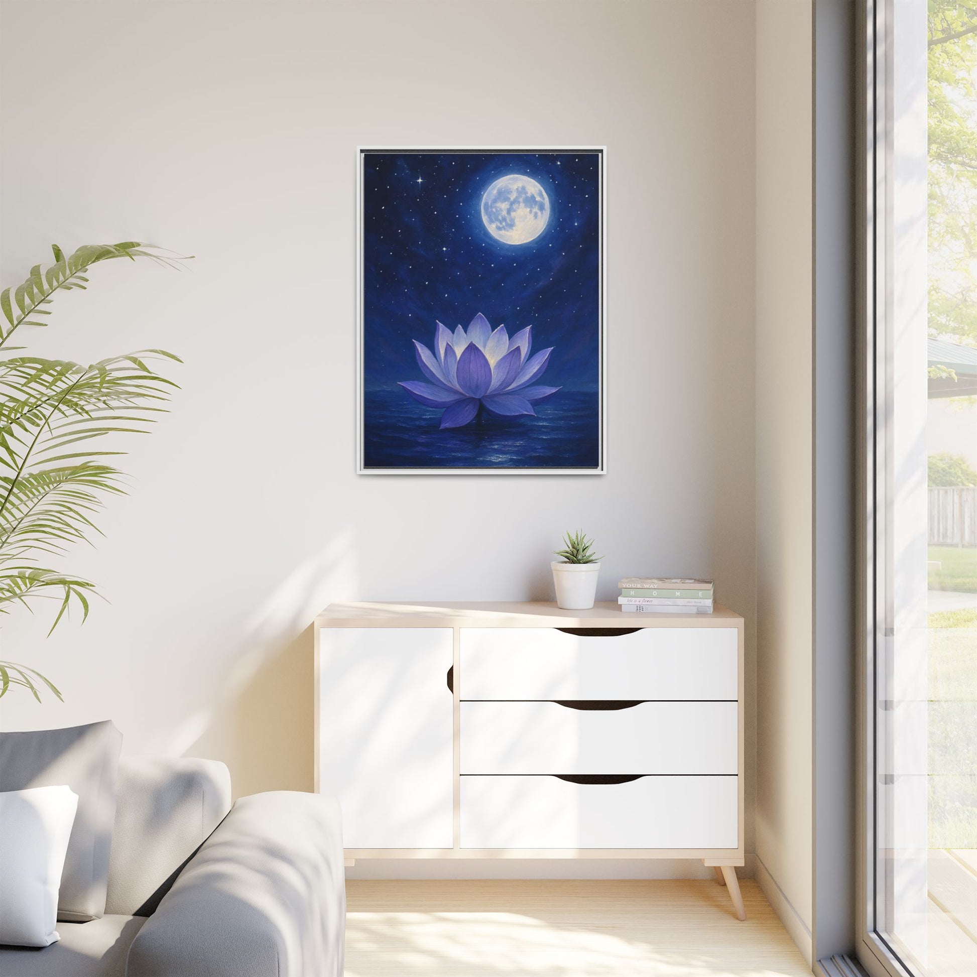 Tranquil Lotus Moon Canvas Art exudes a sense of peace and serenity, perfect for creating a calming atmosphere in your space. Ideal for those who appreciate art that brings a tranquil vibe. Perfect for gifting on occasions like birthdays, housewarmings, and anniversaries.