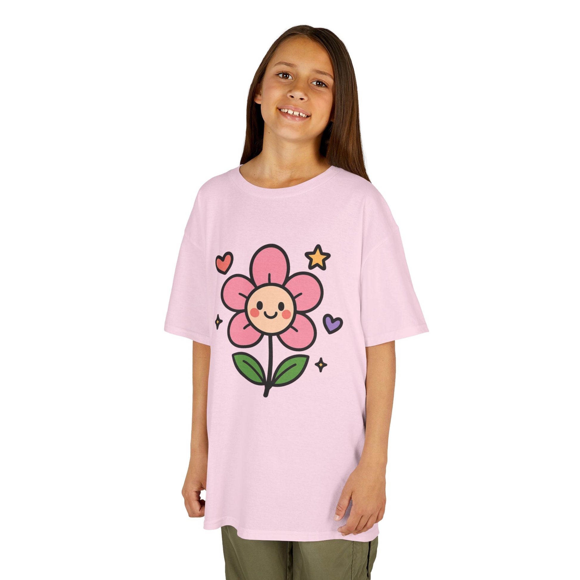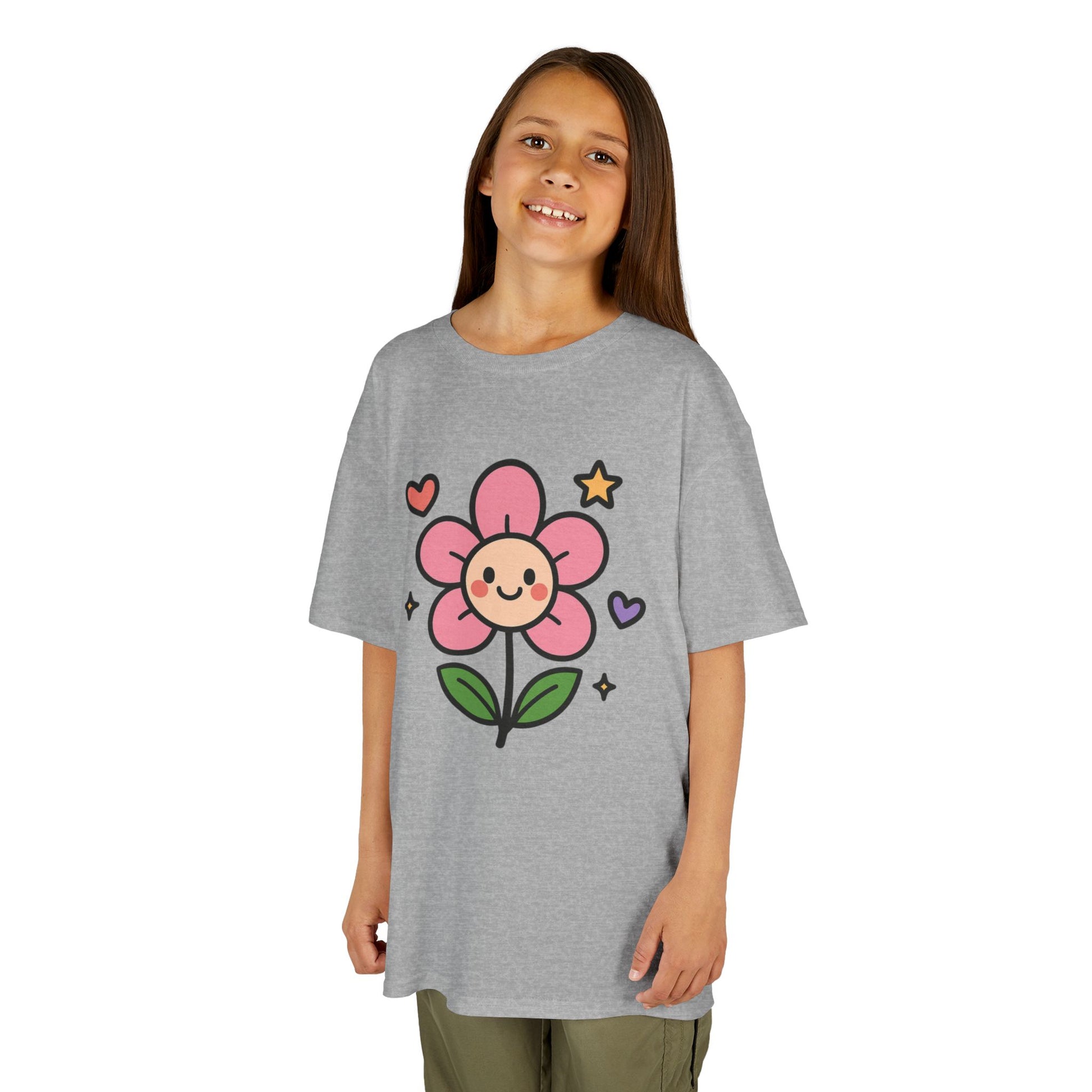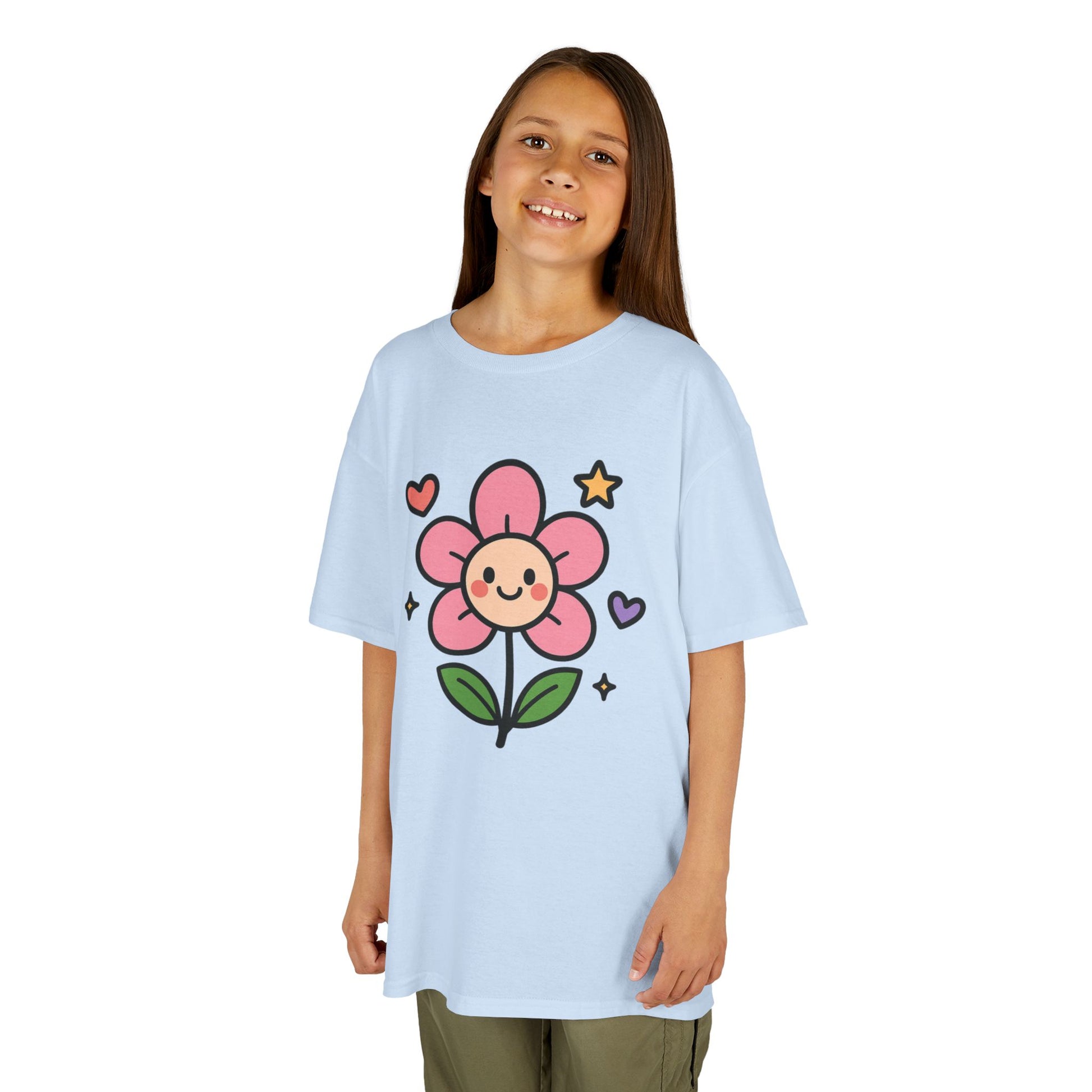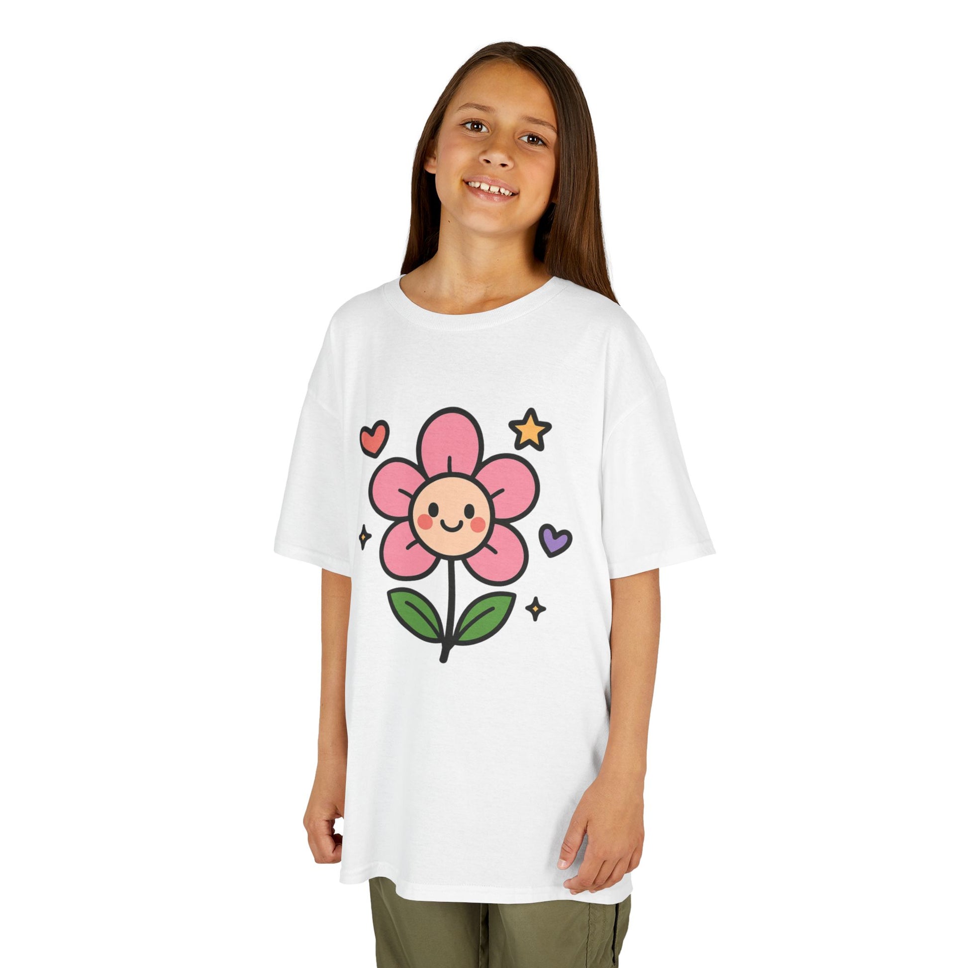 A cute floral tee perfect for young children, this Kids T-Shirt is made with 100% midweight US cotton that feels soft to the touch. It features a ribbed knit collar without seam for shape retention, shoulder tape for stability, and DTF inner neck labels. The timeless style and ethical production make it a great choice for daily wear for kids.