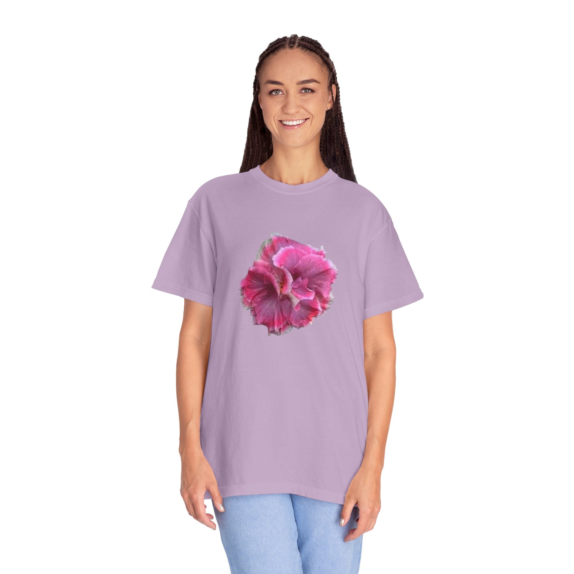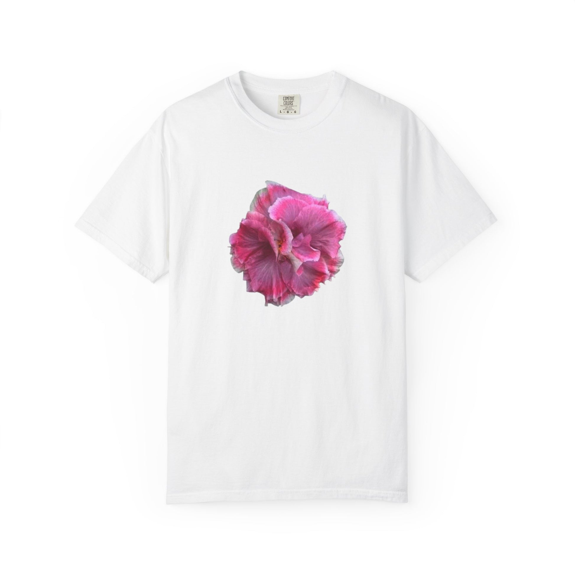 This flower T-shirt exudes a laid-back and casual vibe, perfect for everyday wear or lounging around. It is relevant for those who love floral designs and seek comfort in their clothing. Ideal for spring and summer occasions.