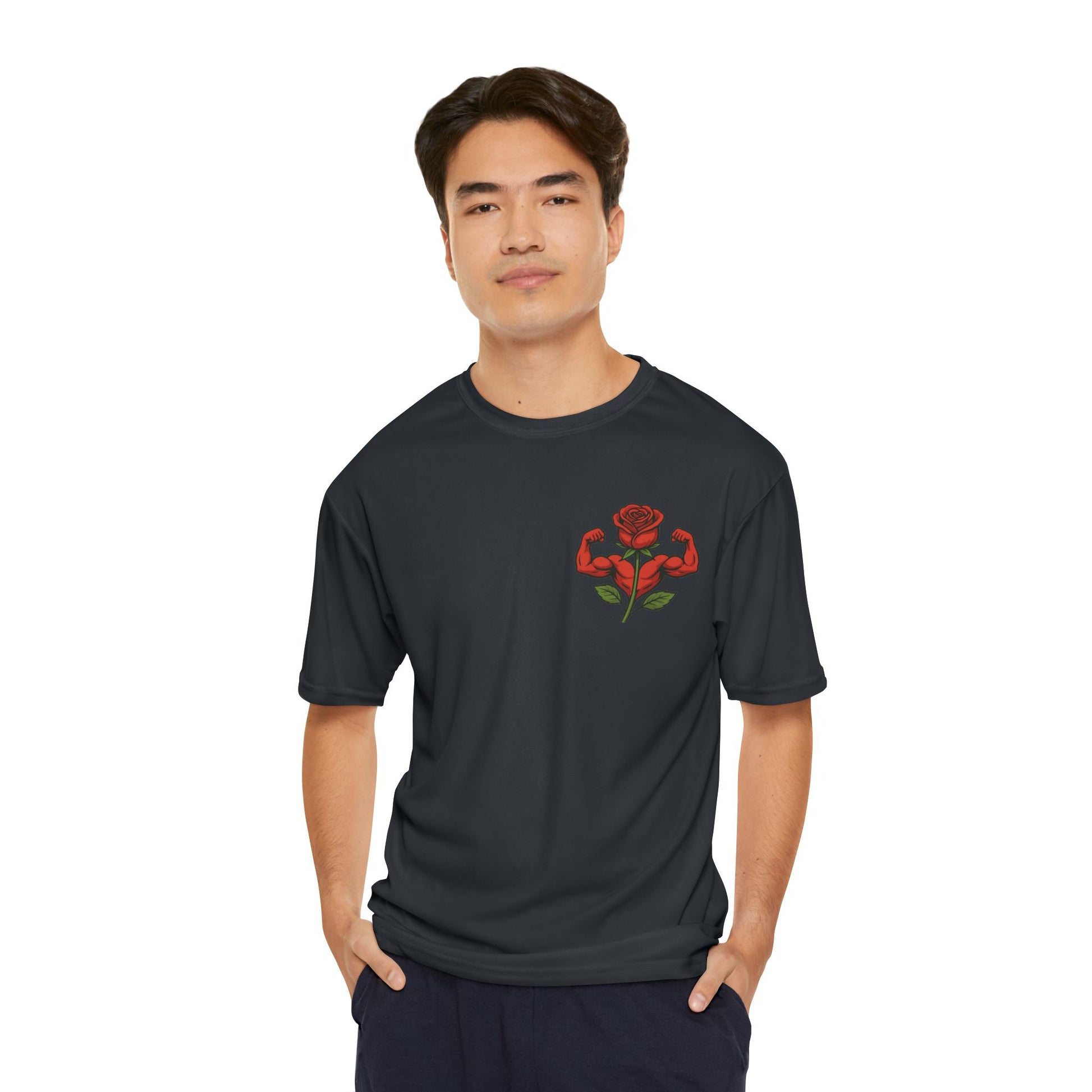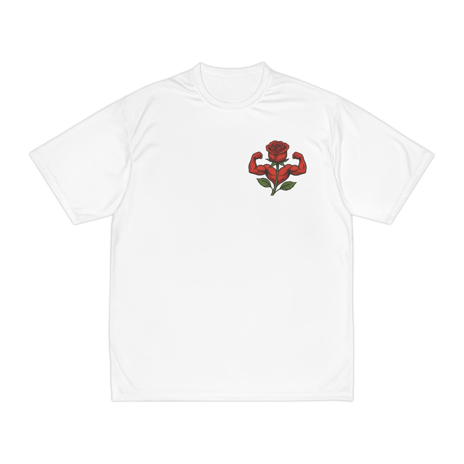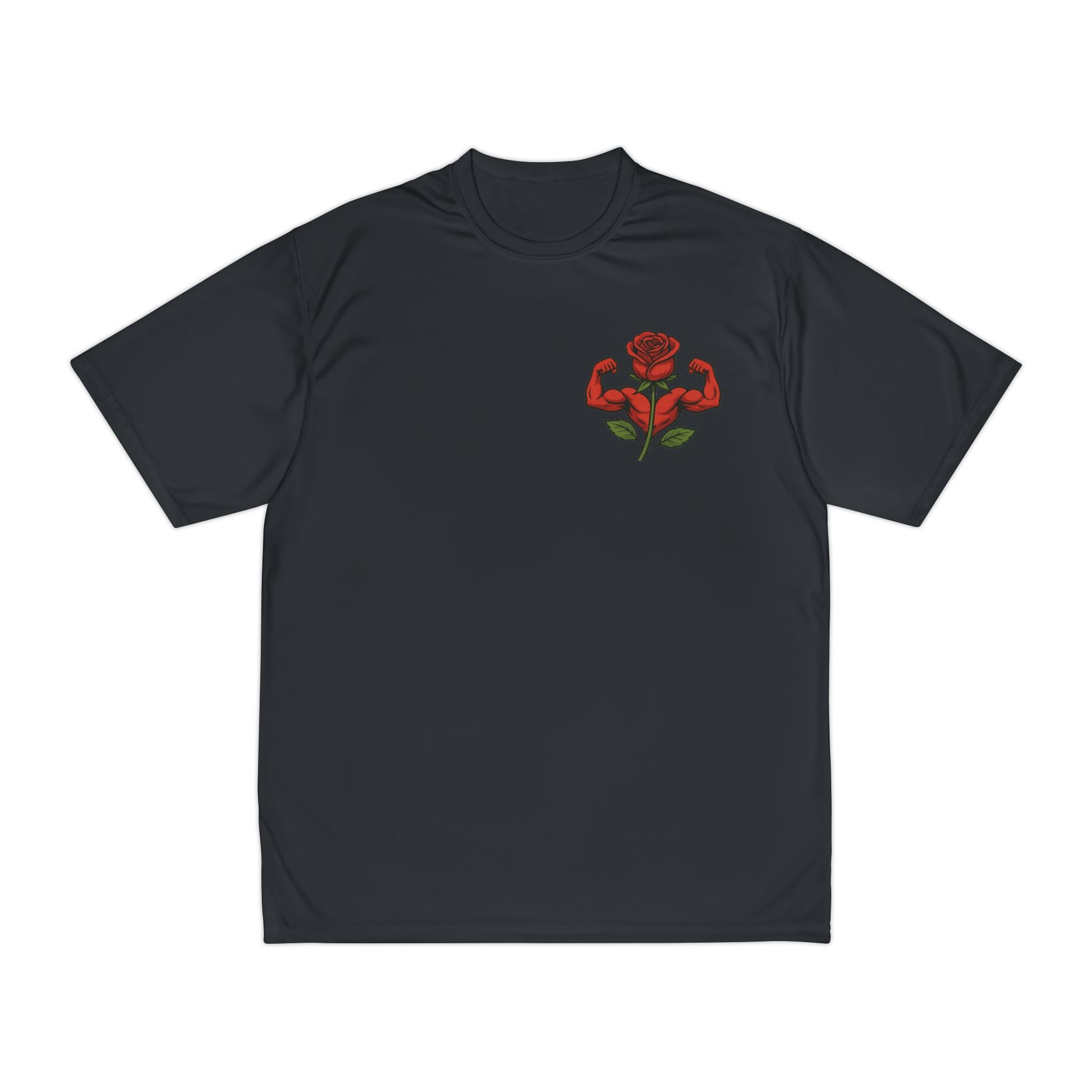 This flower muscle T-Shirt is made of 100% polyester, making it durable and perfect for any physical activity. It has a moisture-wicking material to keep you cool and dry. The double-needle stitching ensures it is long-lasting and the self-fabric binding on the neck prevents stretching. The Direct-to-Film (DTF) print gives a high-quality design finish.
