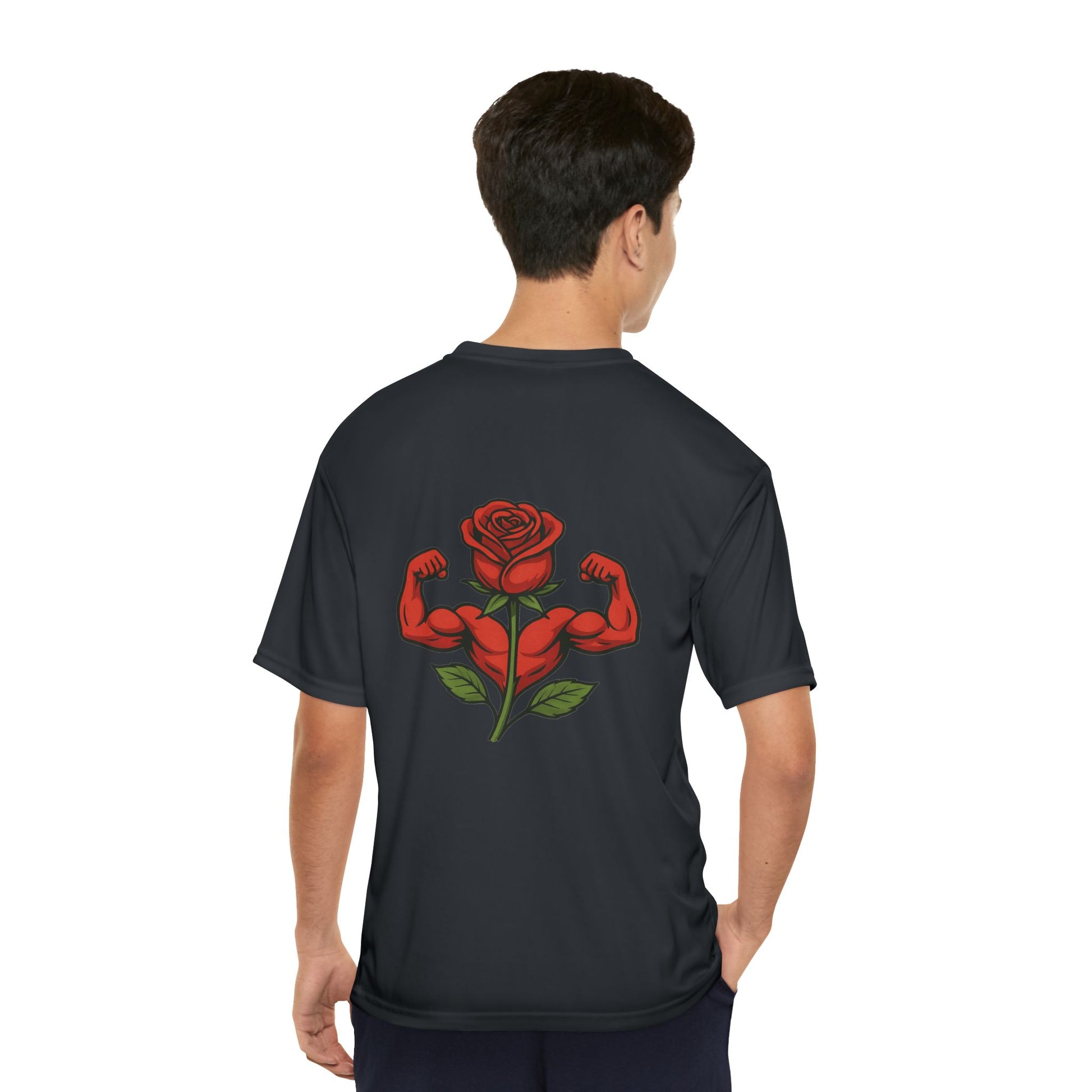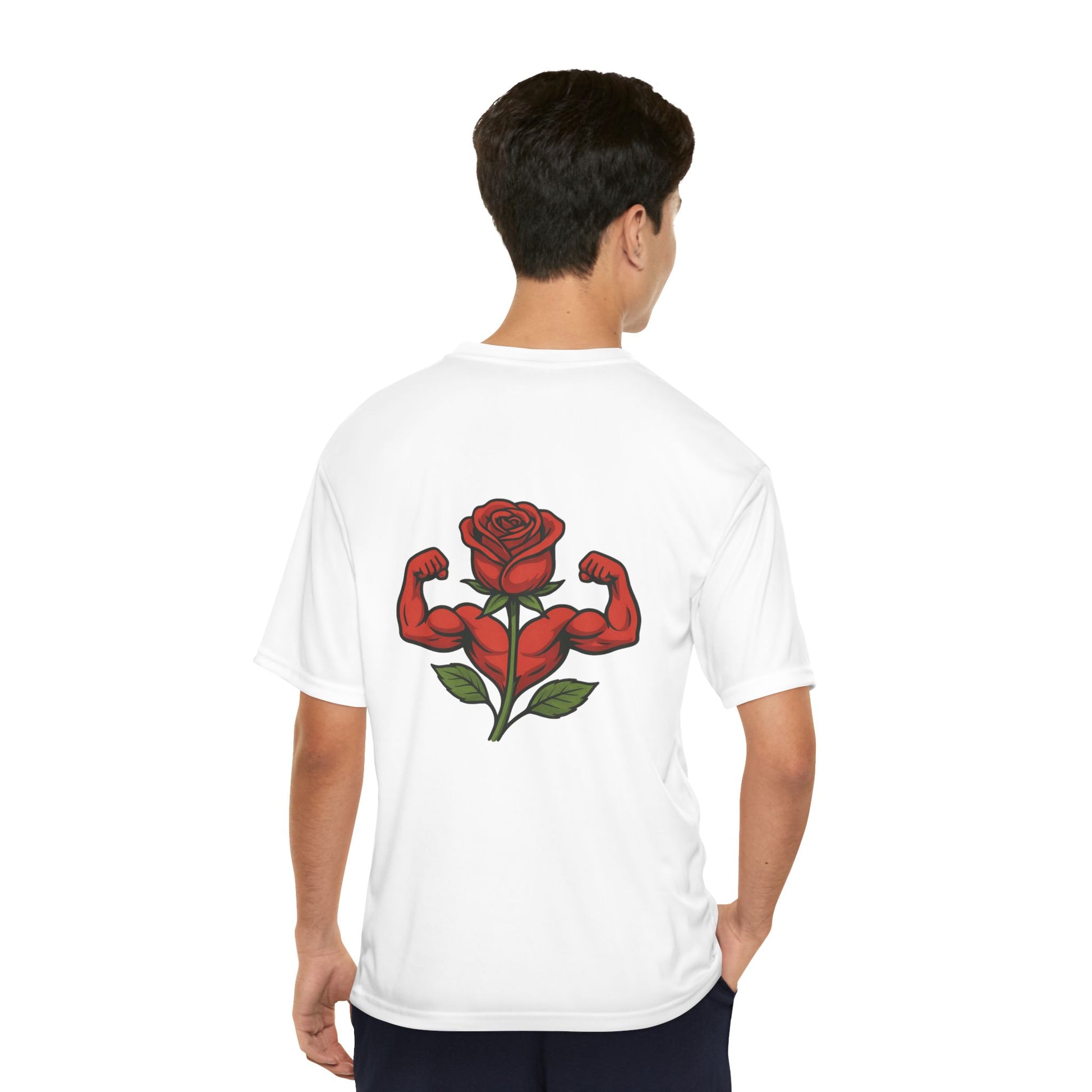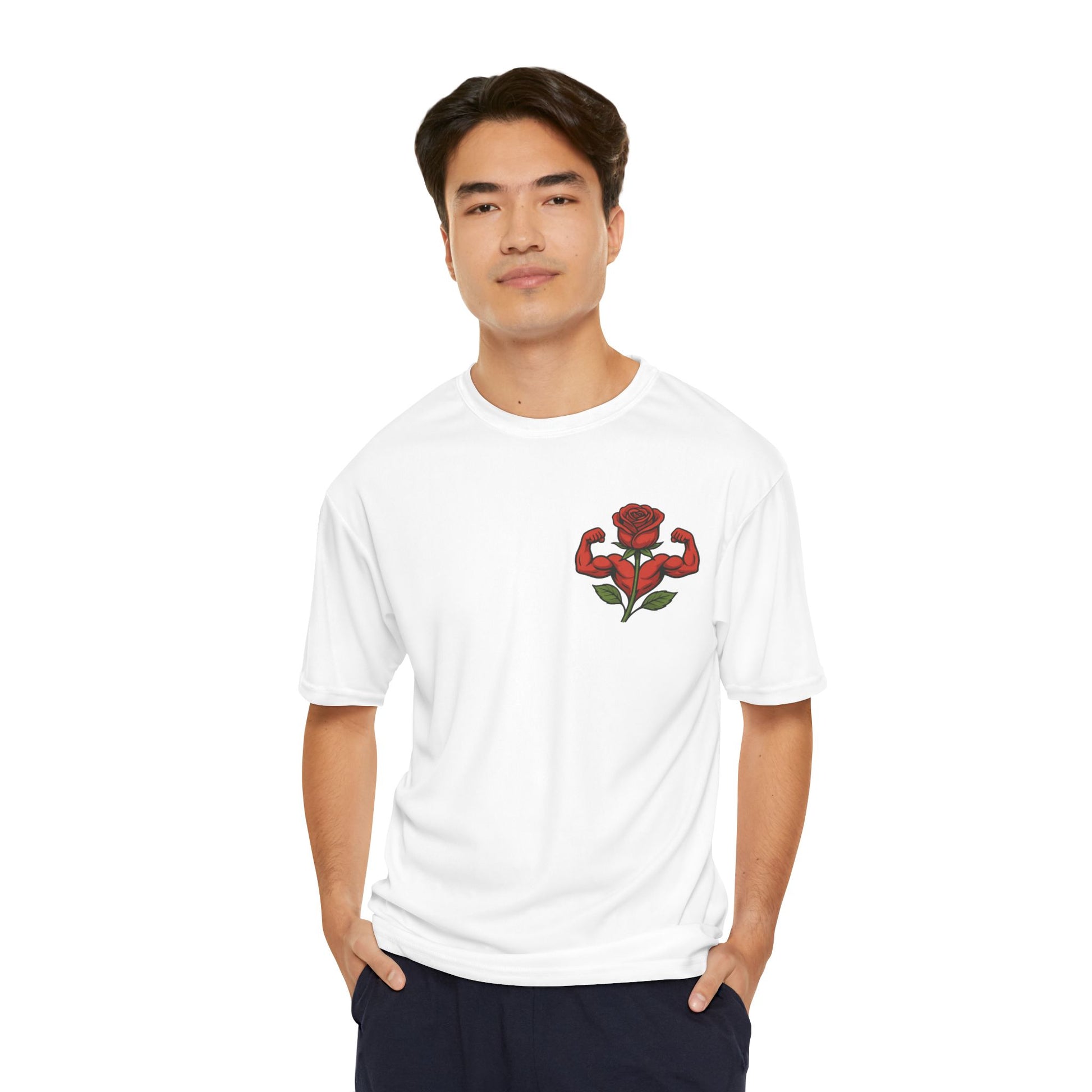 This flower muscle T-Shirt is made of 100% polyester, making it durable and perfect for any physical activity. It has a moisture-wicking material to keep you cool and dry. The double-needle stitching ensures it is long-lasting and the self-fabric binding on the neck prevents stretching. The Direct-to-Film (DTF) print gives a high-quality design finish.