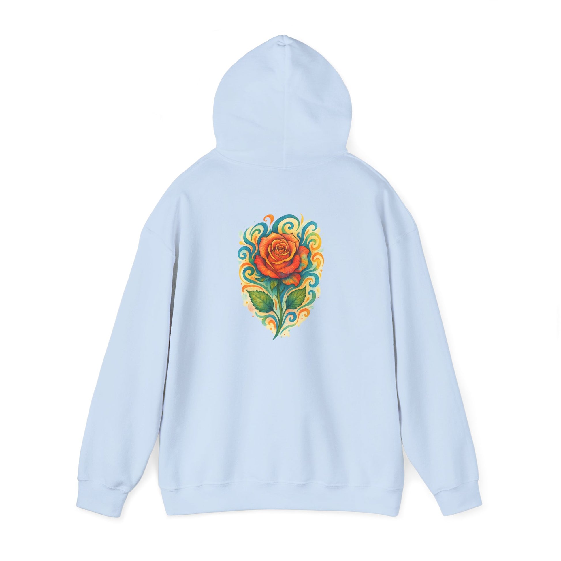 This roomy hoodie carries a hand-painted rose motif that feels like a secret kept close to the heart. Soft, brushed fabric and a roomy kangaroo pocket create a warm, wearable canvas for the vibrant floral design printed on the back. It’s made to be lived in — tossed over a tee for cool mornings, layered for late-night walks, or pulled on after studio sessions. The embroidered-feel print sits like a small work of art, adding color and personality without shouting. Minimal seams and a double-lined hood keep the silhouette clean and comfortable. Wear it when you want something cozy that still reads as thoughtful and creative.
