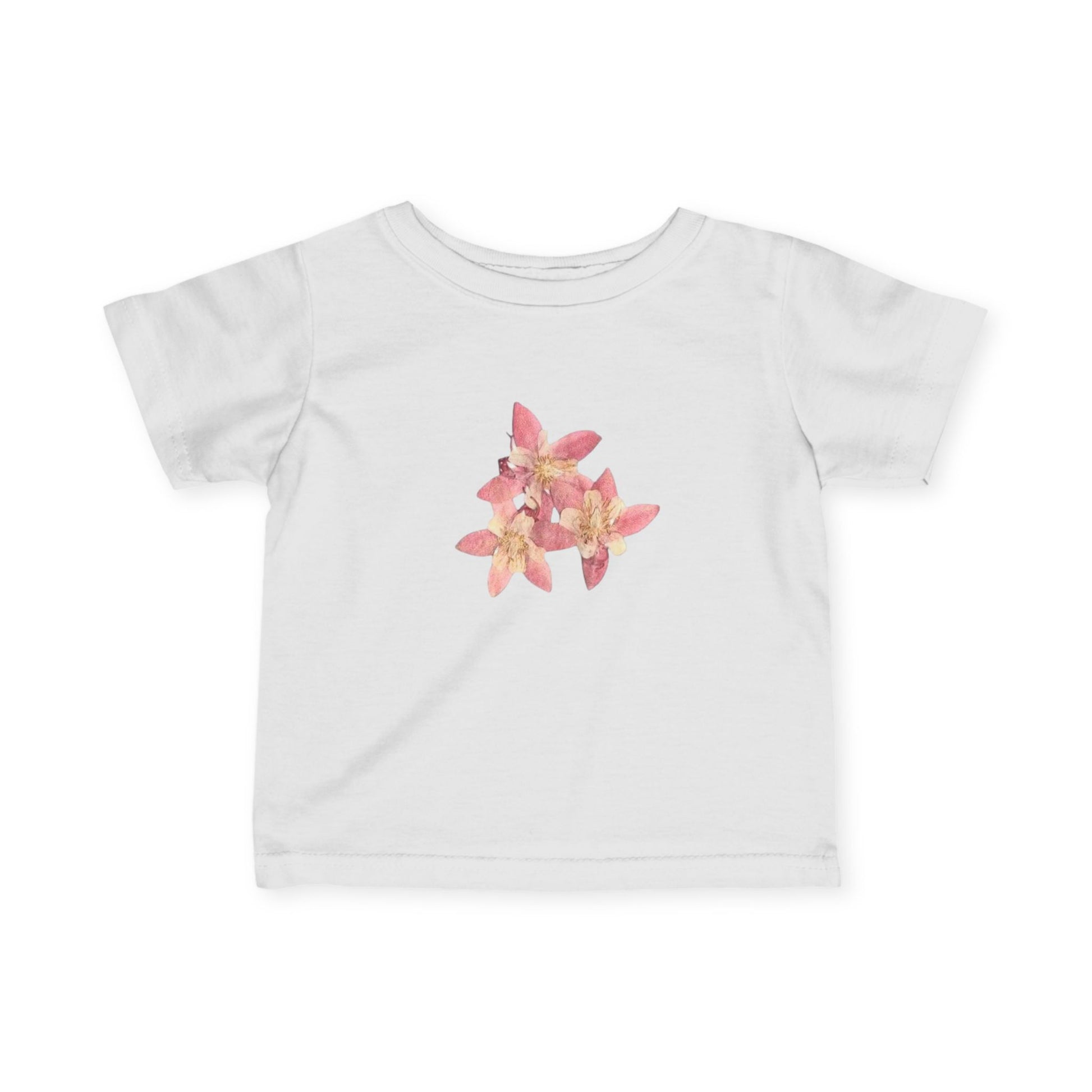 This adorable baby tee features a simple and delicate flower design, perfect for everyday wear or special occasions. It gives off a cute and charming vibe, making it a great addition to any little one's wardrobe. Ideal for parents looking for a stylish and comfortable option for their infants, especially suitable for spring and summer outings or events.