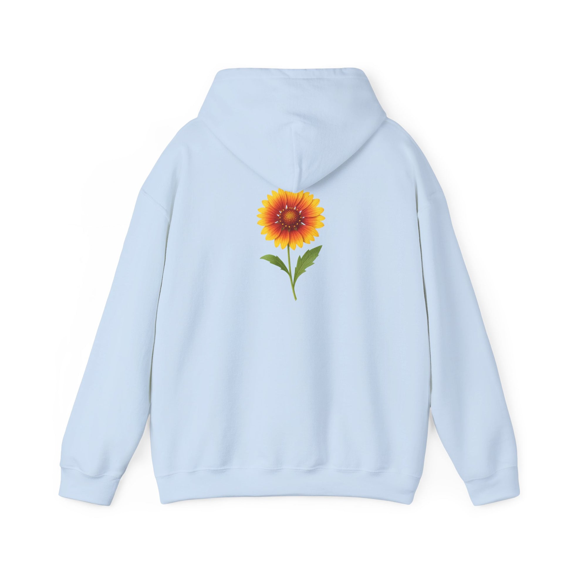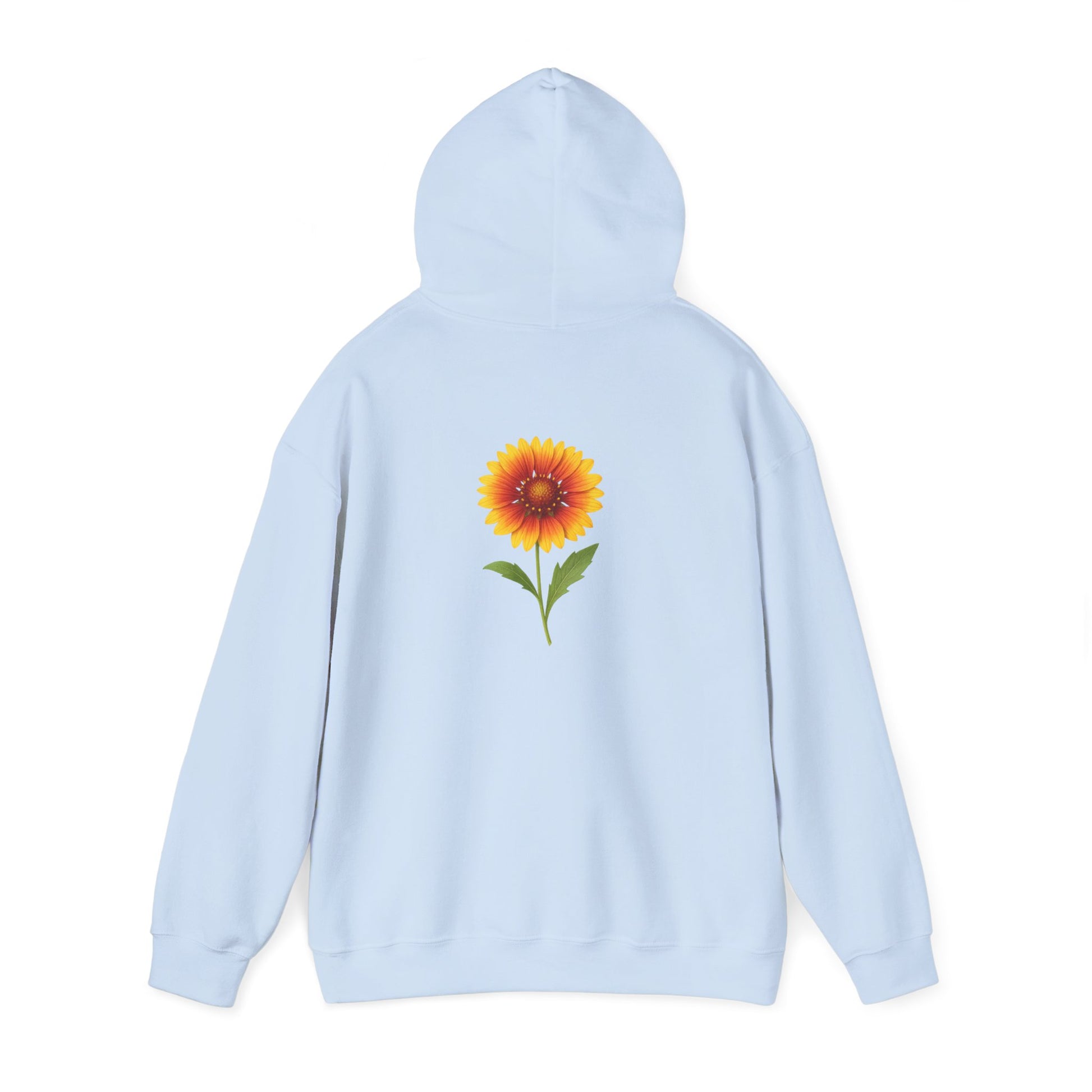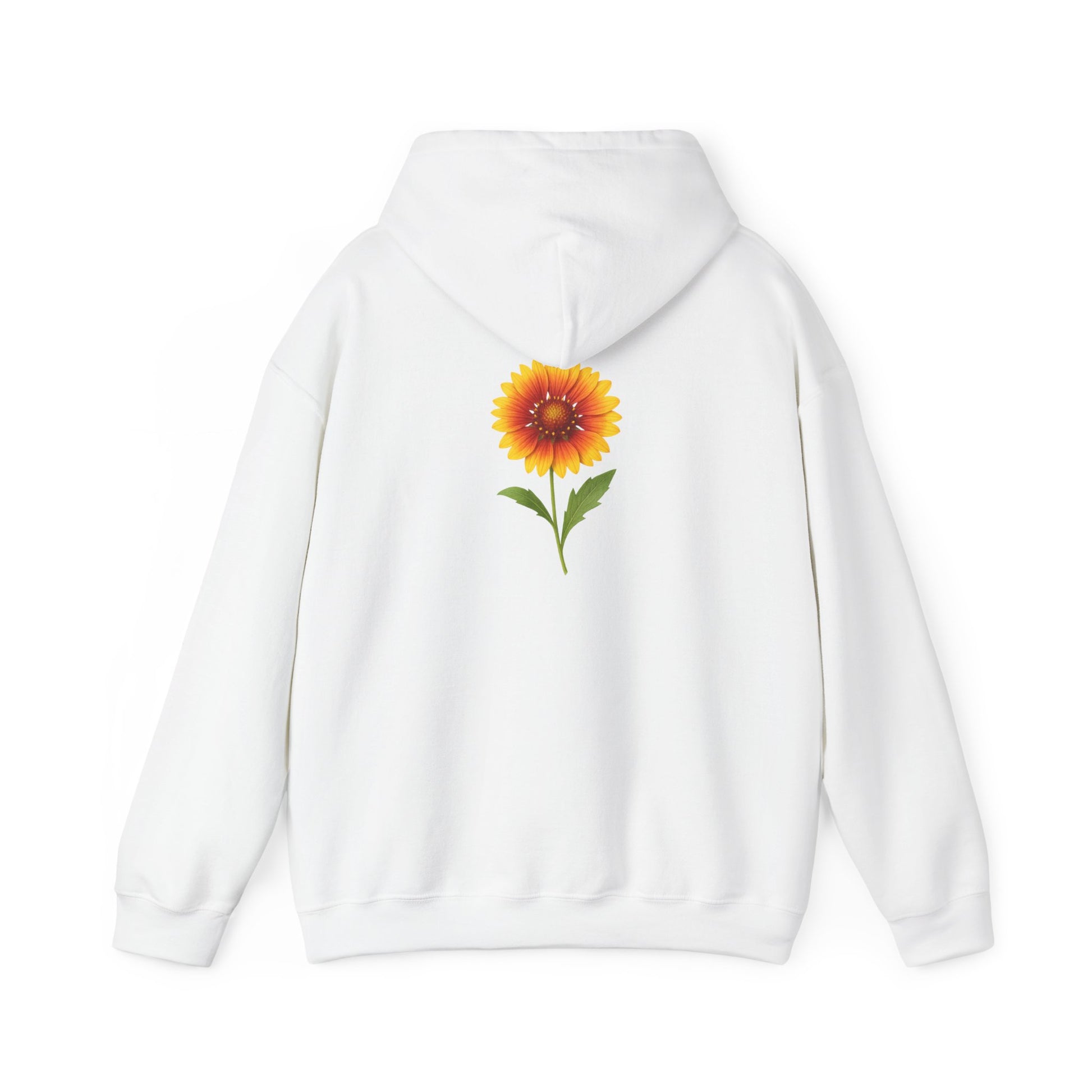 Sunflower Cozy Hoodie perfect for chilly days, featuring a kangaroo pouch pocket to keep hands warm and an adjustable hood for added comfort. Ideal for adults looking for a stylish and cozy piece of clothing, relevant for fall and winter seasons.