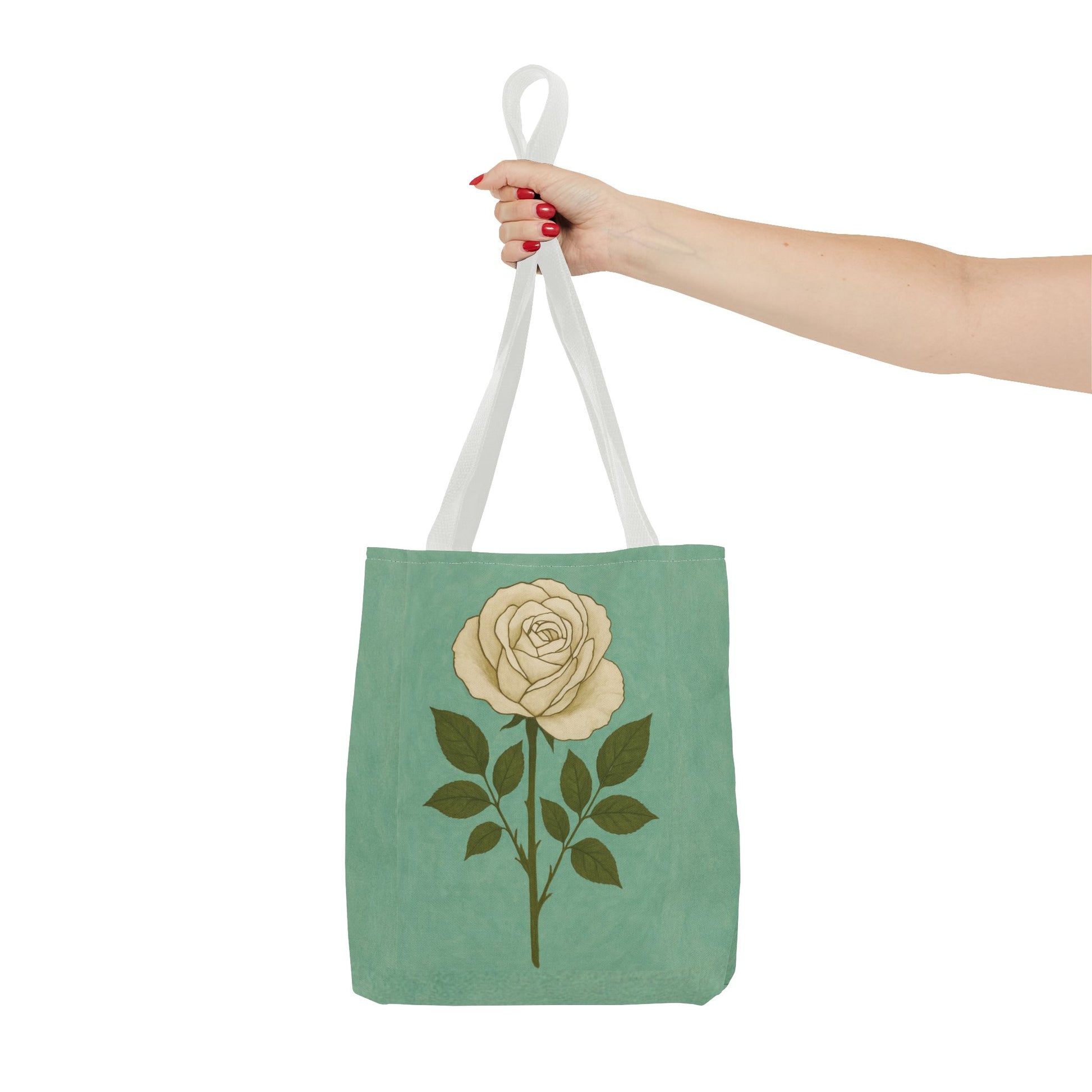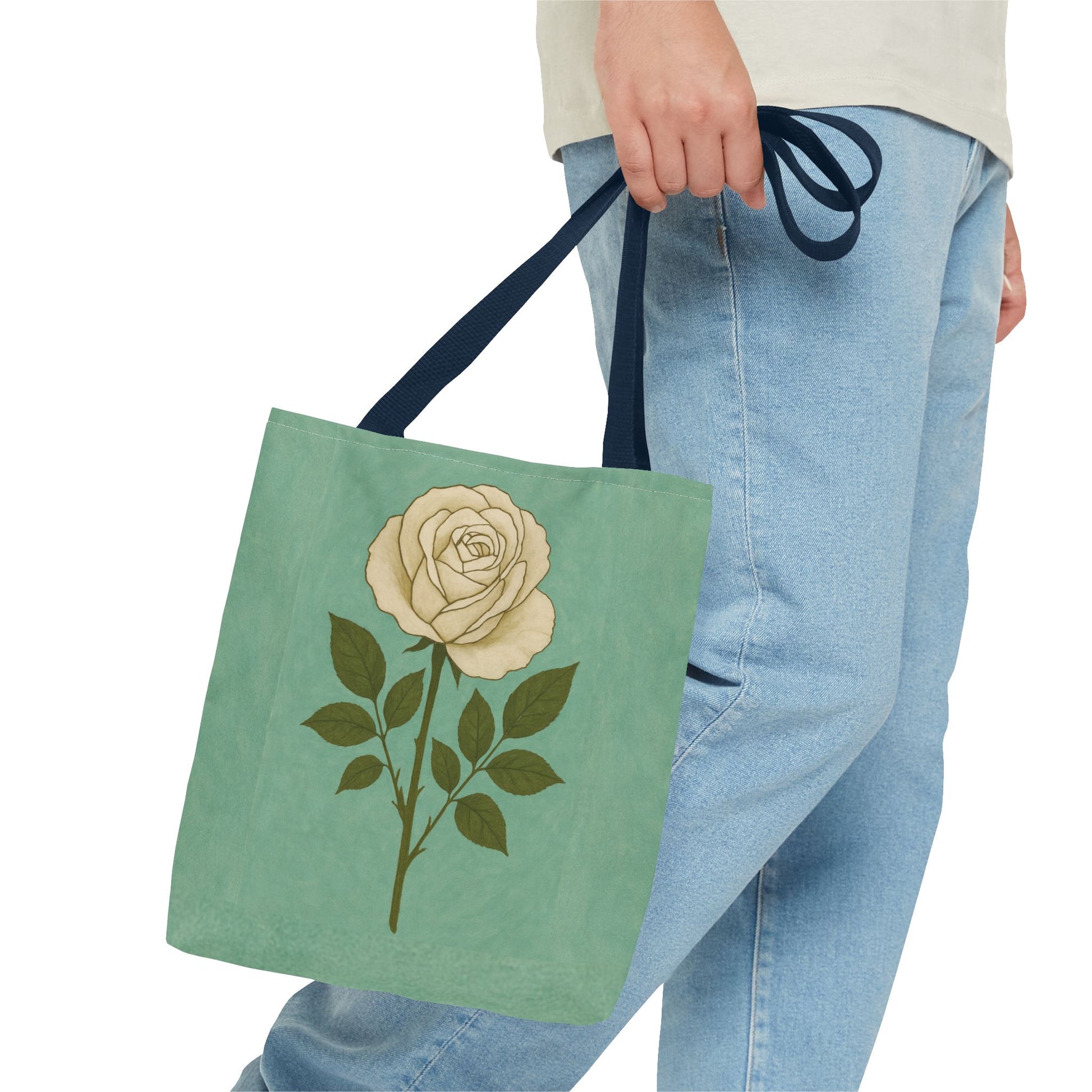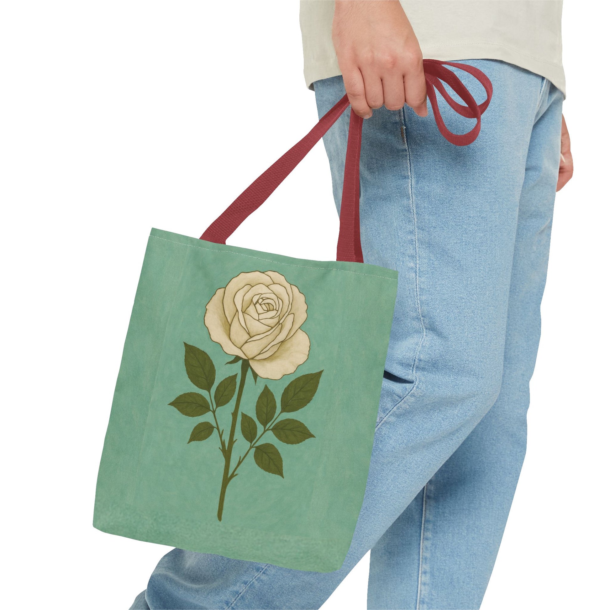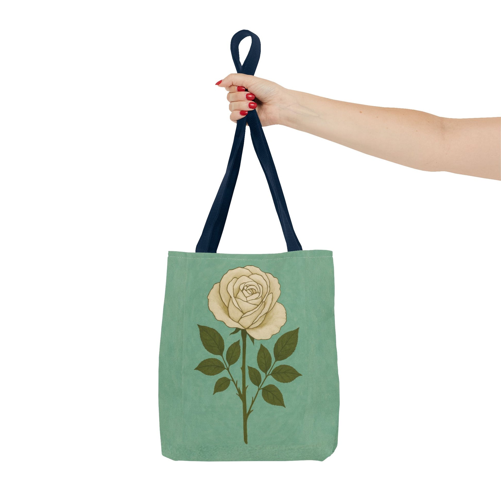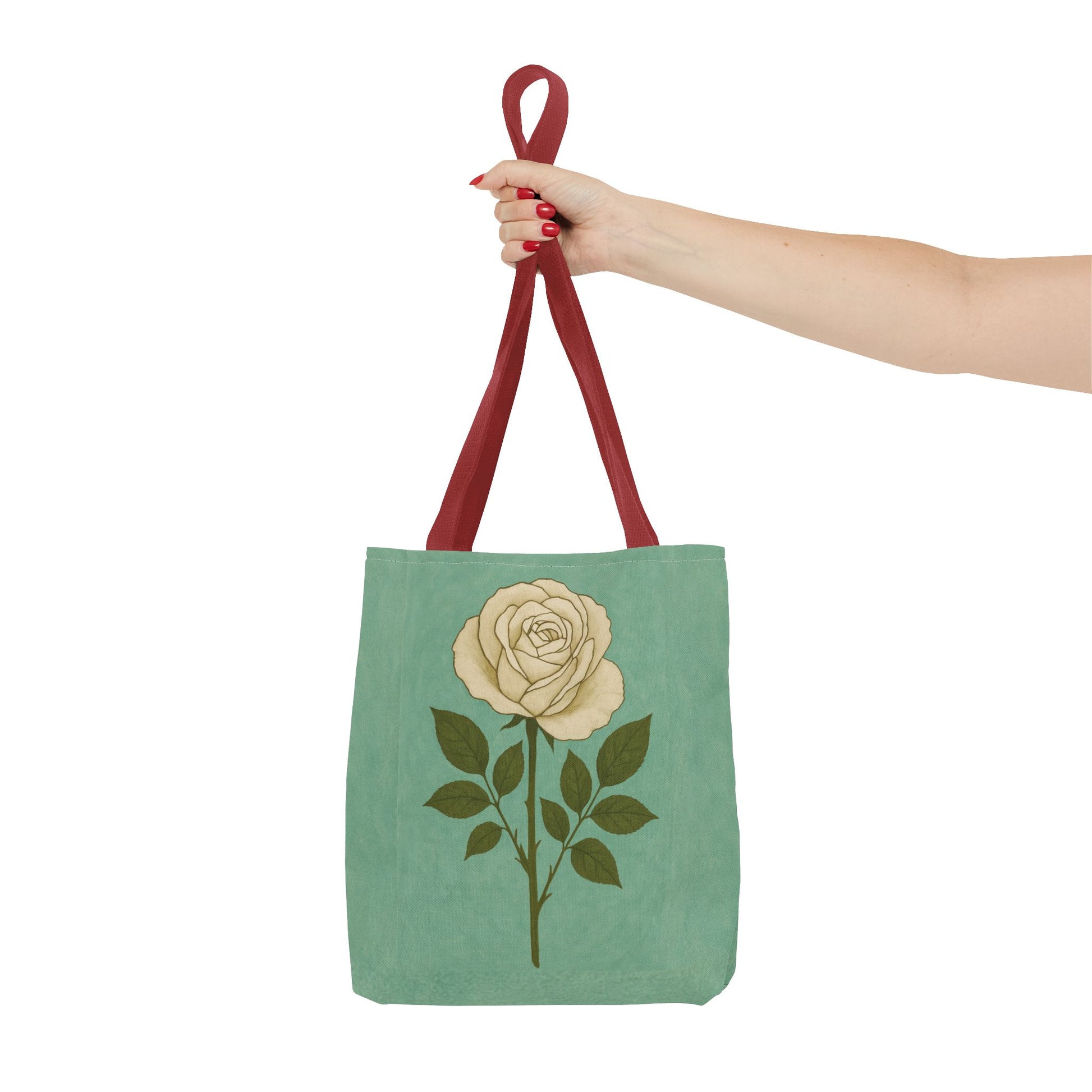 This tote bag is perfect for carrying all your essentials in style. Made with 100% polyester, it is durable and ideal for everyday use. The seamless thread color, reinforced stitching on handles, and boxed corners provide additional strength and room. With 5 handle color options and 3 size choices, this tote bag can cater to anyone's needs. It is a must-have accessory for those who appreciate functionality and fashion, making it suitable for shopping, school, work, and travel.