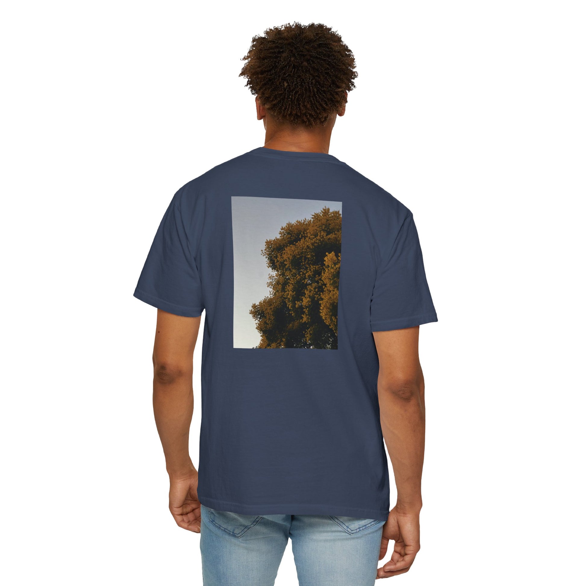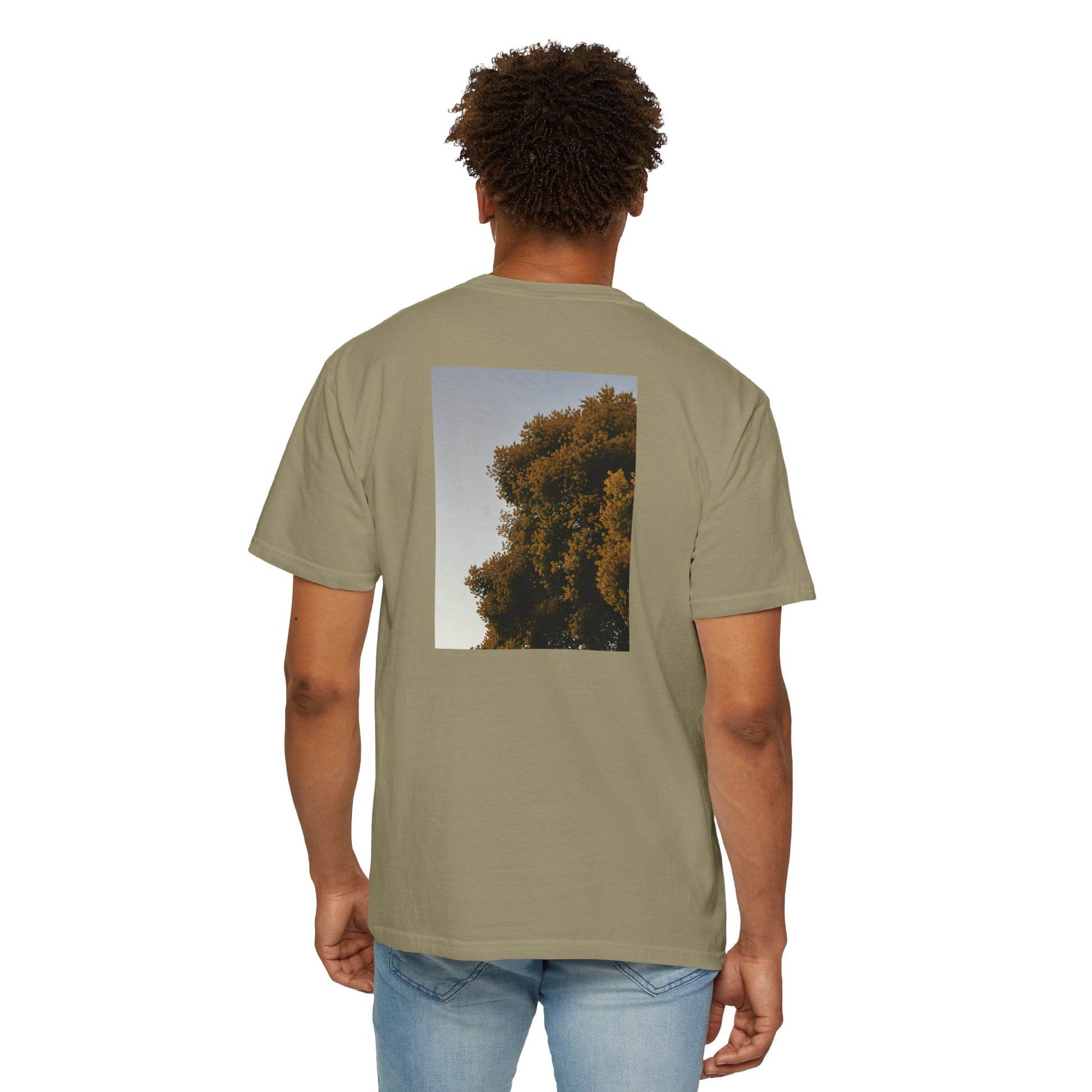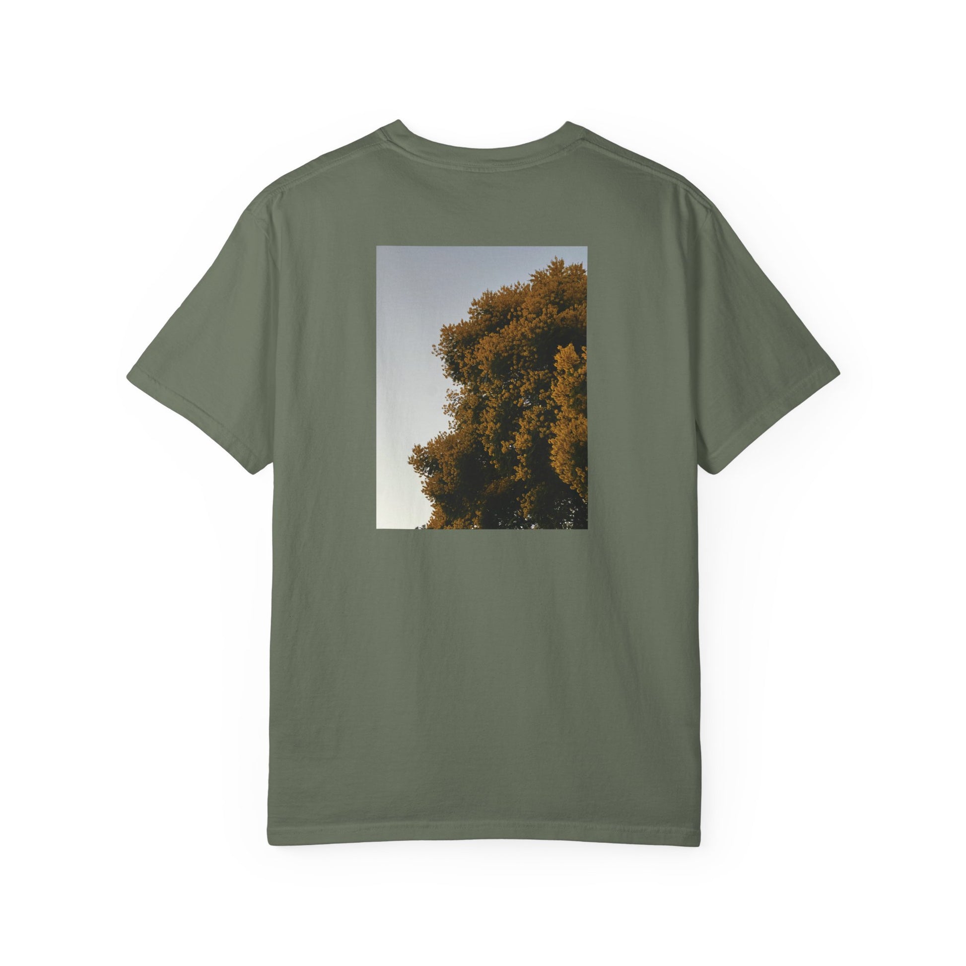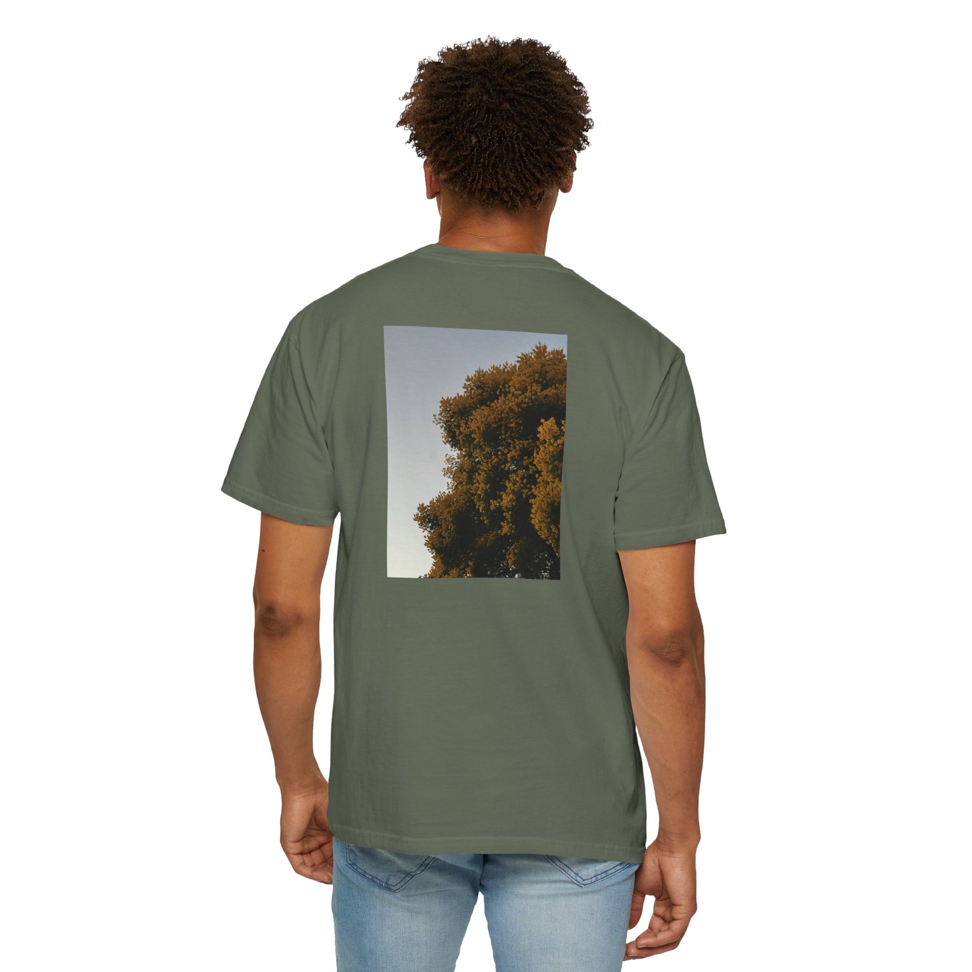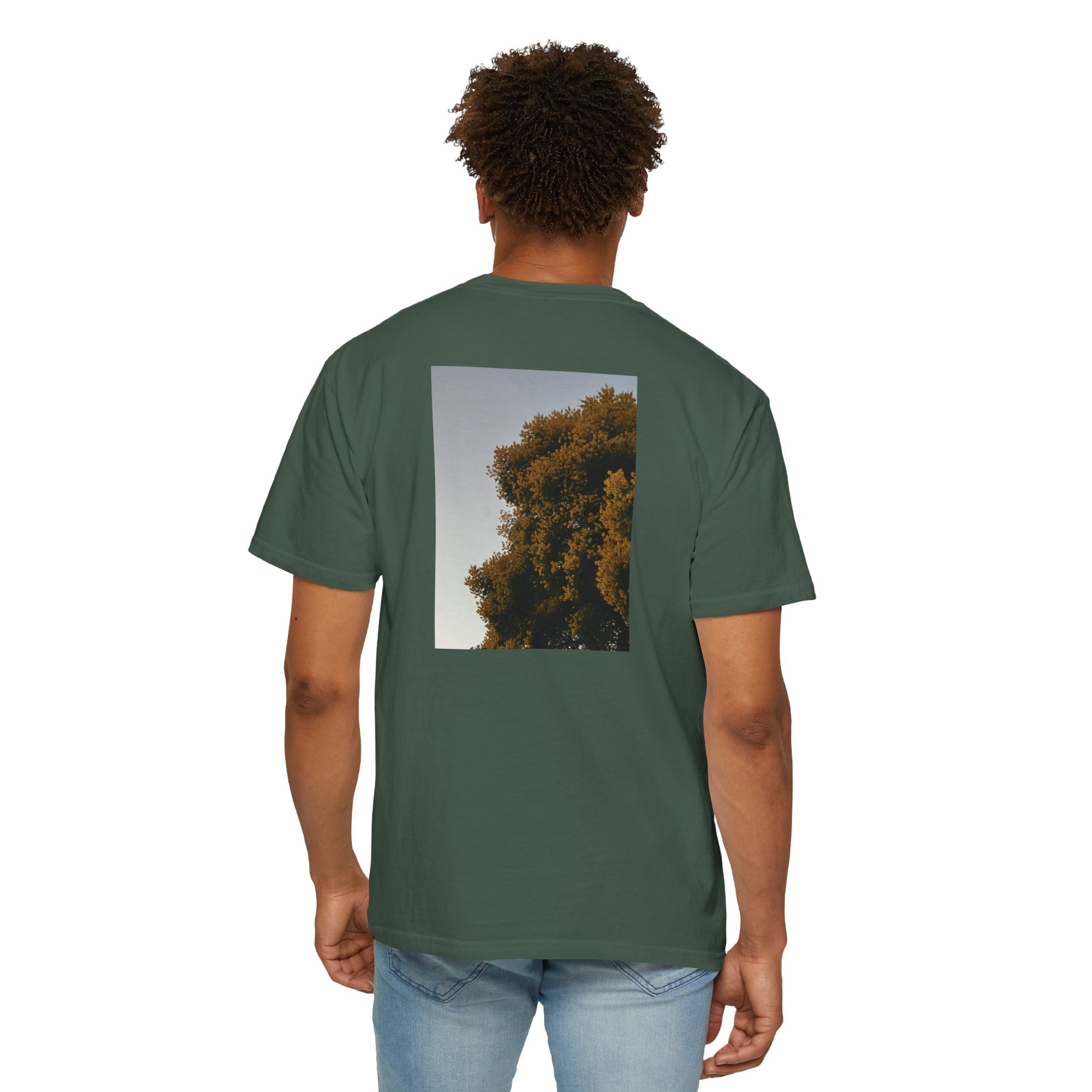 A comfortable and versatile garment-dyed t-shirt featuring a tree design. Perfect for nature lovers and those who appreciate a soft, textured look. Ideal for casual wear and outdoor occasions.