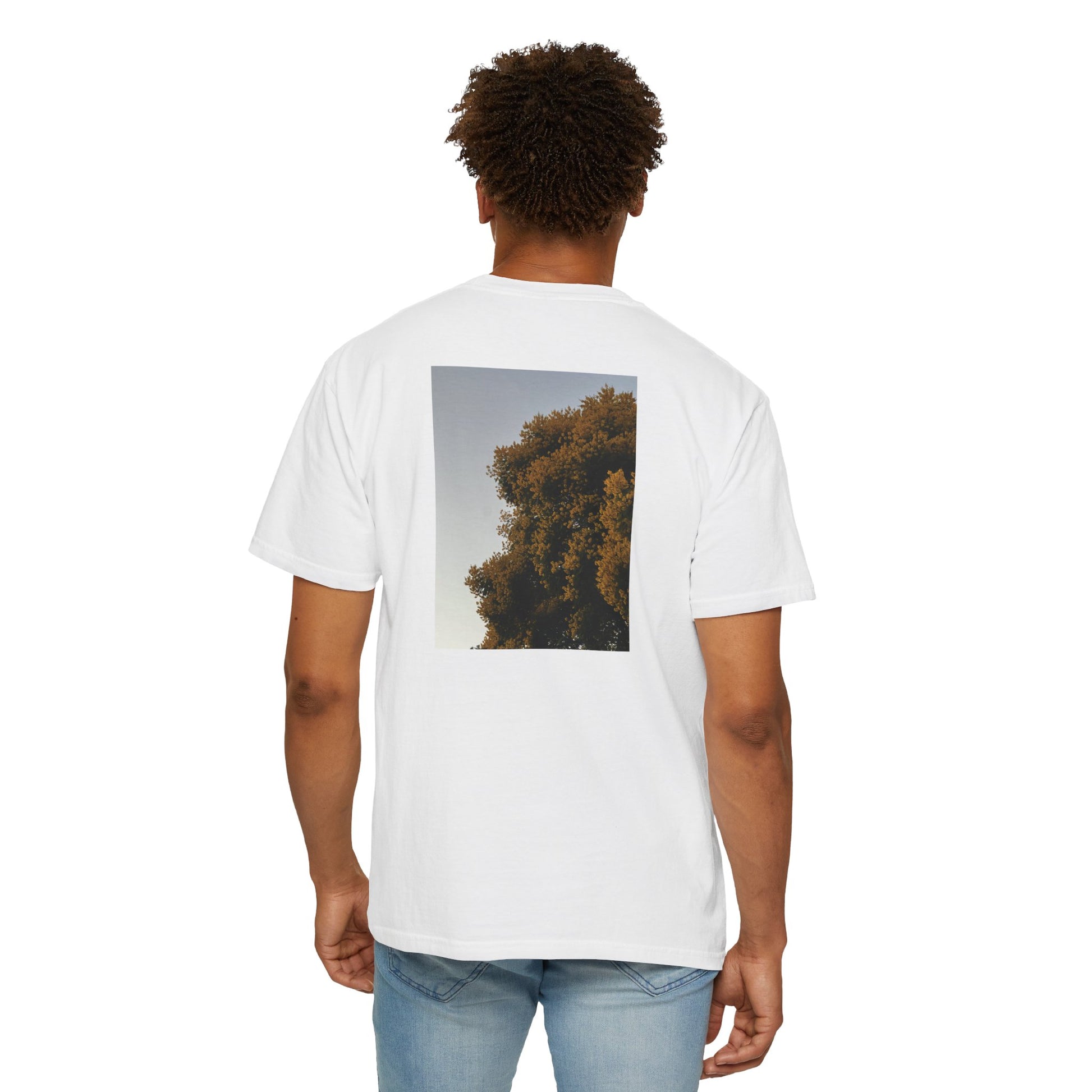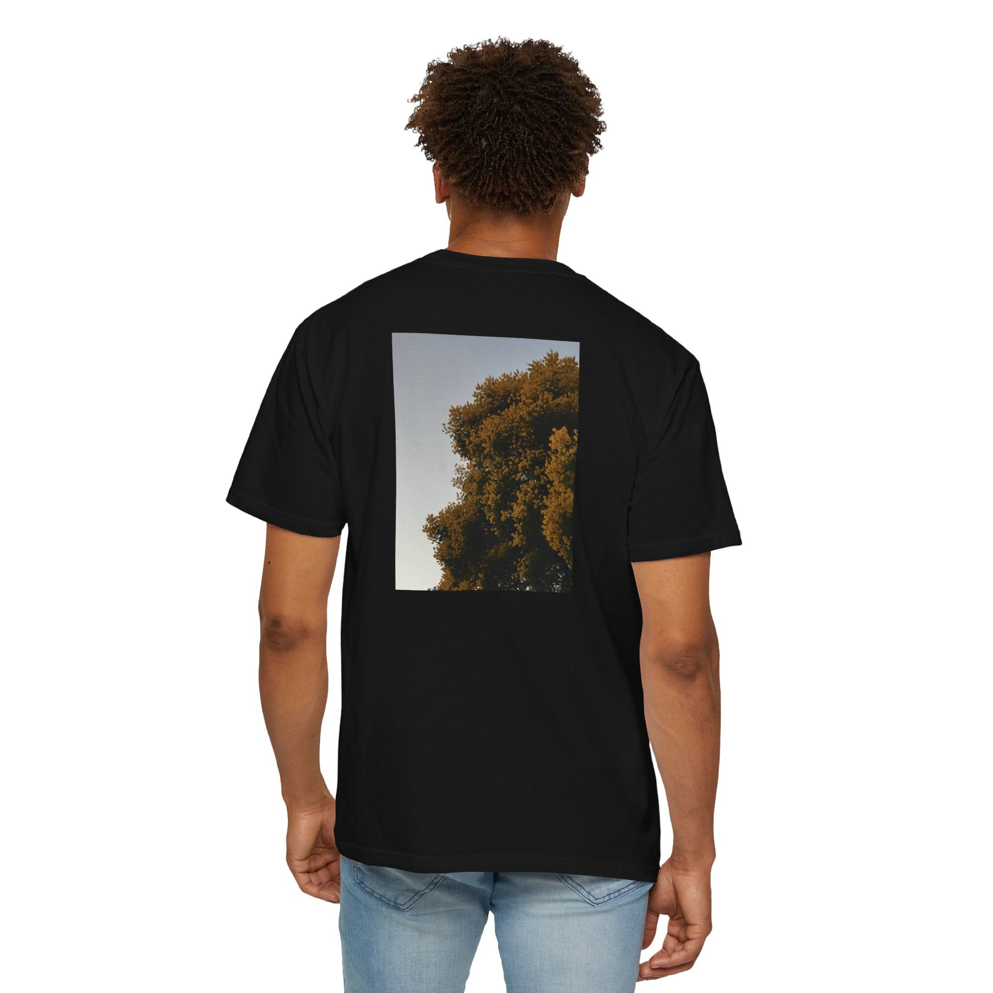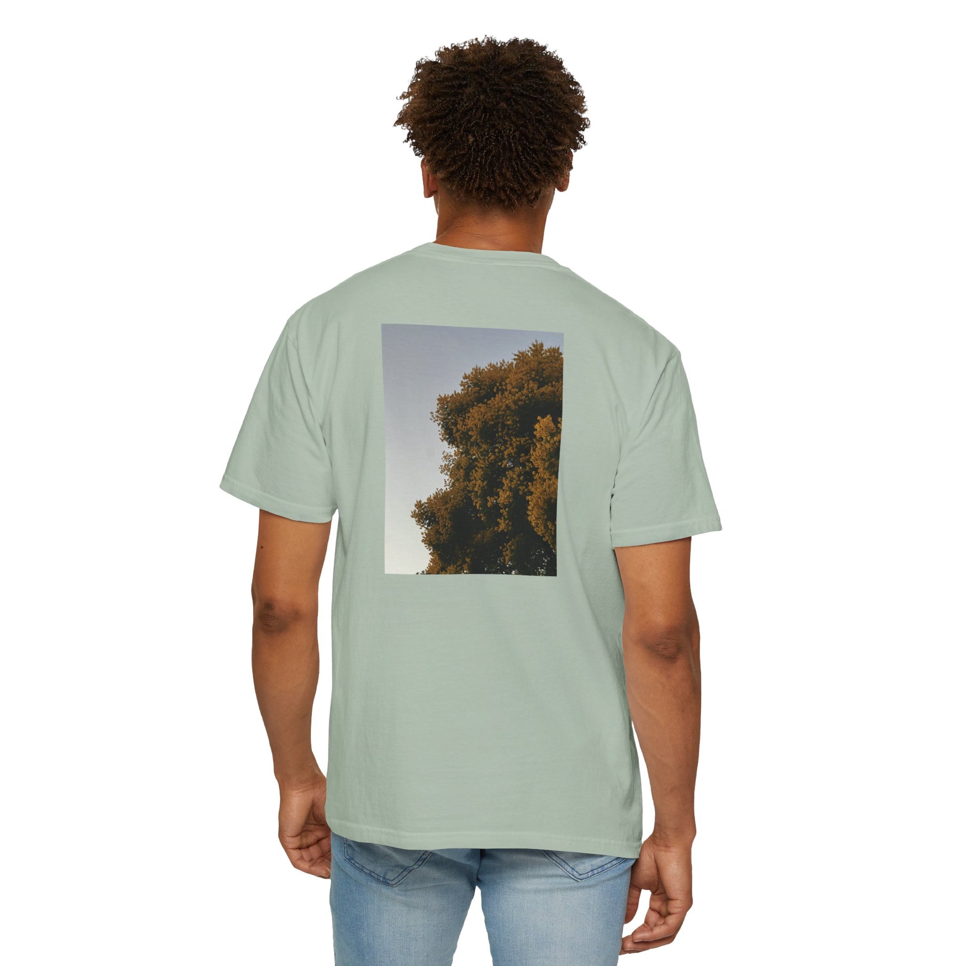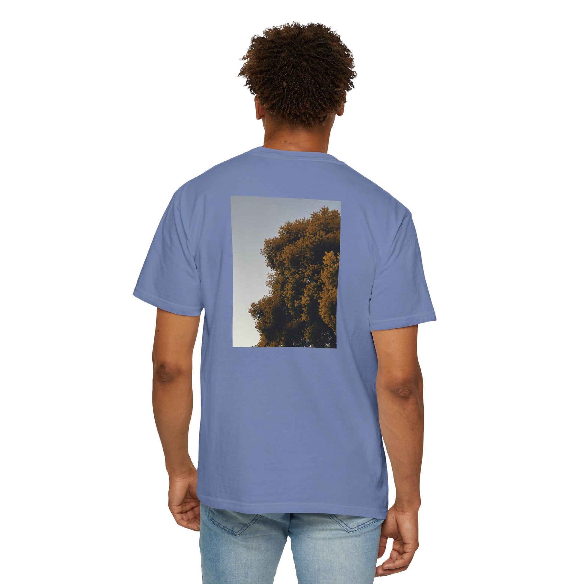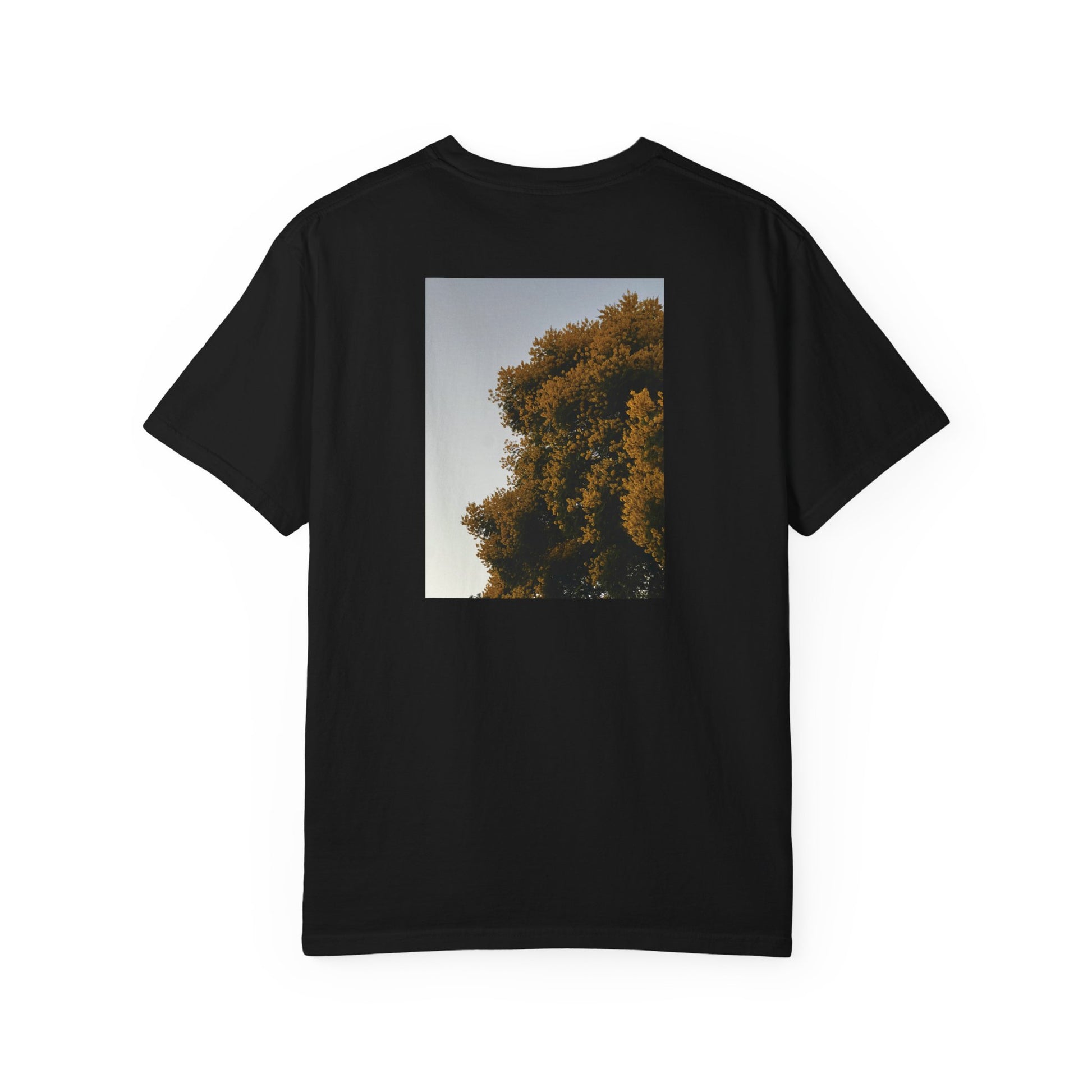 A comfortable and versatile garment-dyed t-shirt featuring a tree design. Perfect for nature lovers and those who appreciate a soft, textured look. Ideal for casual wear and outdoor occasions.